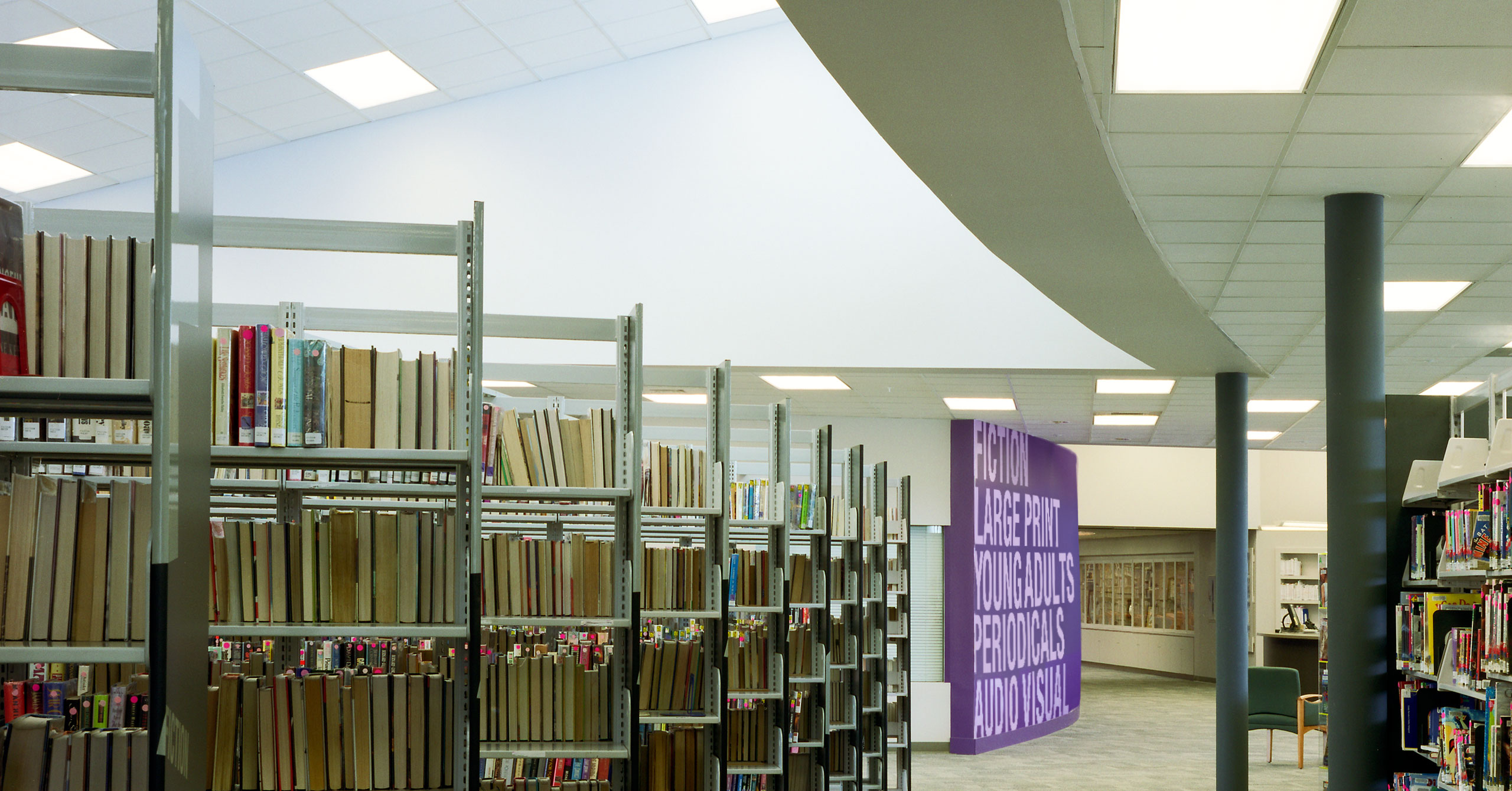 A serene expansion of this public library doubled its square footage and reoriented the building toward an existing lake. An exterior courtyard space works with the existing indoor 150 seat auditorium for community events. Inside, indirect natural light infuses the quiet reading areas.